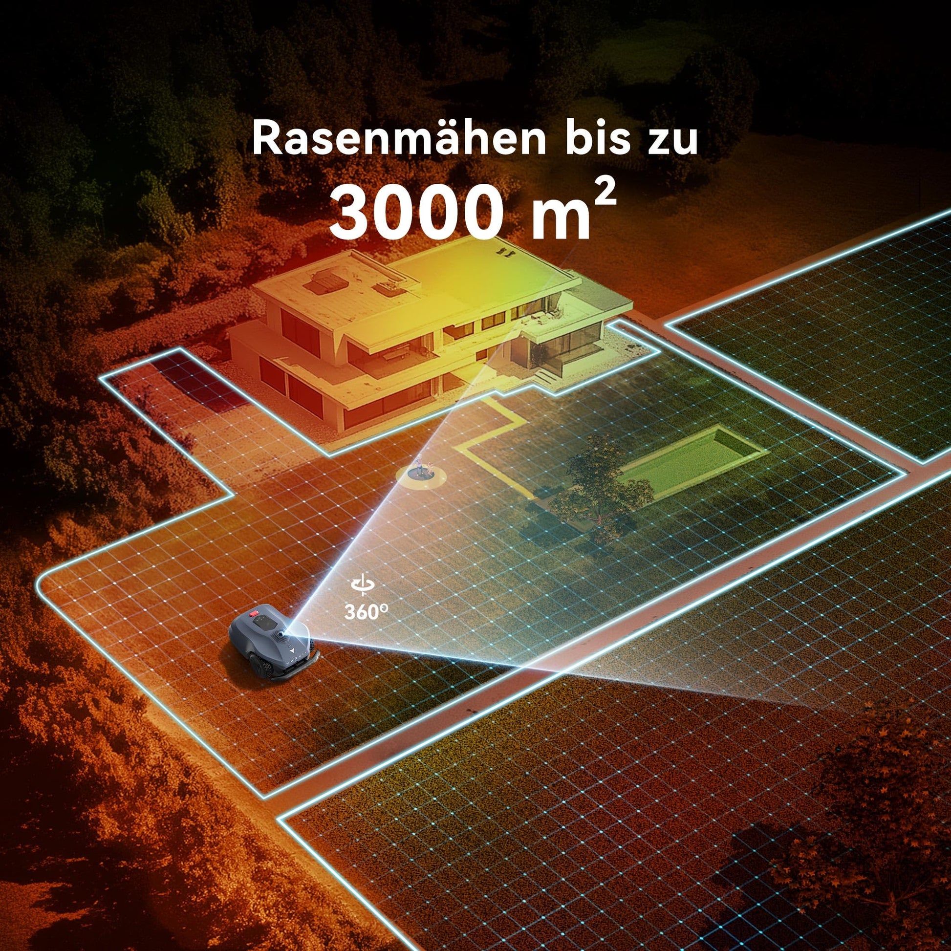 MAMMOTION YUKA 3000 Mähroboter ohne Begrenzungskabel, NetRTK+Vision, Keine RTK-Antenne erforderlich, Rasenmähroboter, Auto-Kartierung, Max. 3600m