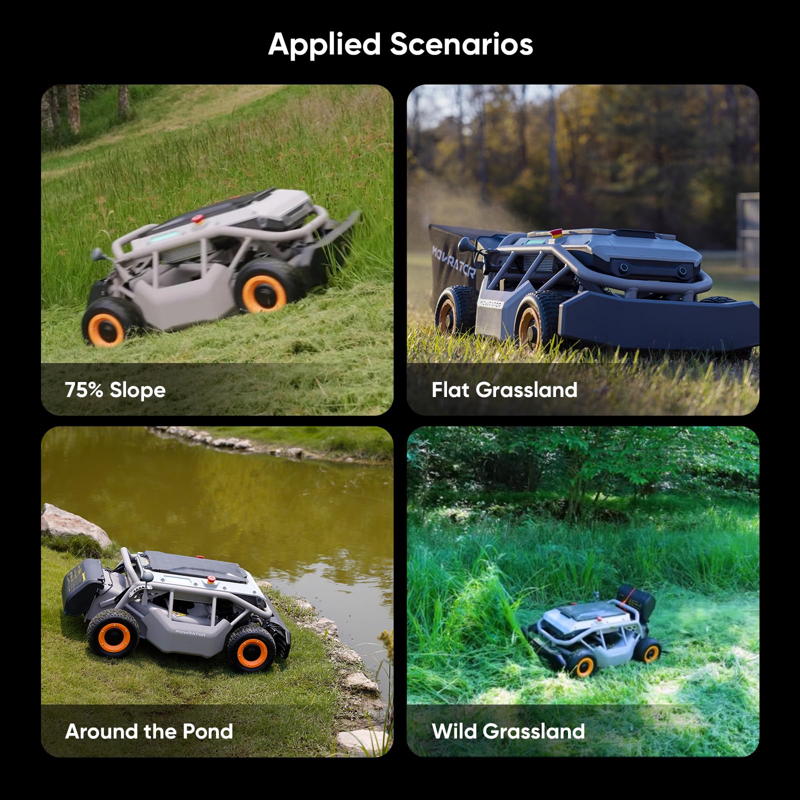 - Beherrscht 75 % Steigungen sicher und mühelos – angetrieben von Beast Quad 1000 W Motoren + FOC E-Brake für unaufhaltsame Traktion. Kein rückbrechendes Schieben mehr - Fernbedienung ermöglicht 300% schnelleres Steigmähen im Vergleich zu herkömmlichen Mähern ohne Umkipprisiko.
